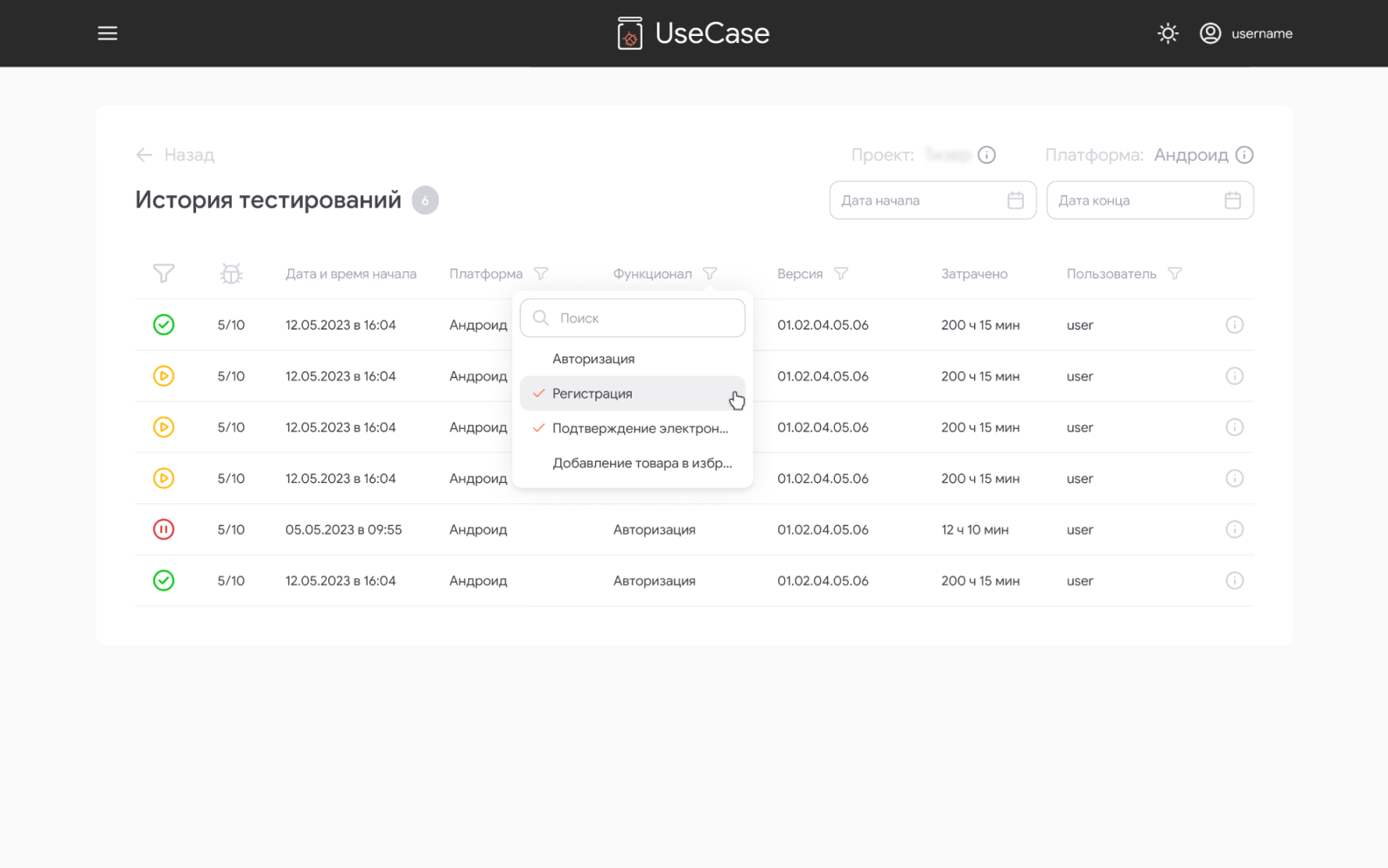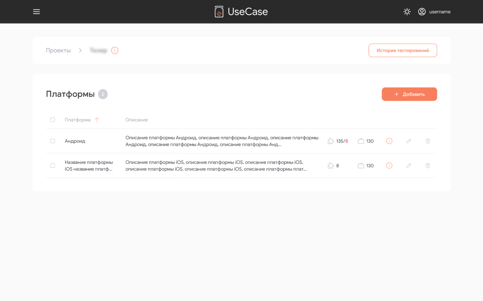 Нажимая на строку функционала, мы попадаем в список кейсов этого функционала.